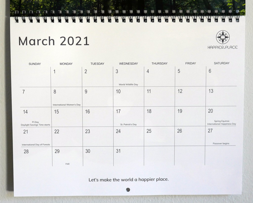 For the fourth year in a row, Happier Place published a wall calendar featuring my photography. It’s not too late to get one.