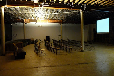 The film premiered on April 18th in Gainesville, Florida, the college town where the film was shot in 1996 and 2006. The location where the actual event took place is a really cool and still rather raw space next door to the super popular alternative bar/restaurant The Top and therefore aptly named: The Top Secret Space. Housed in a former Woolworth with old lamps and exposed beams it created just the right atmosphere for our unconventional and time-traveling documentary.