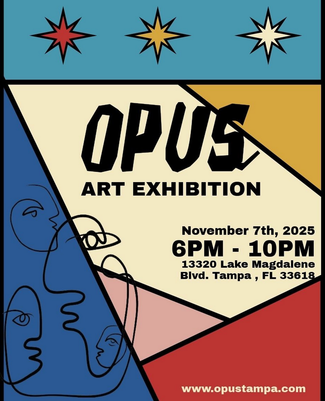 OPUS is a juried art exhibition in Tampa, Florida that is free both to show in and to attend. There is no cost to the artist, no gallery fee, and OPUS does not take a percentage of any sales of the art. The exhibition is hosted at Tampa Covenant Church, in a unique industrial-modern space.