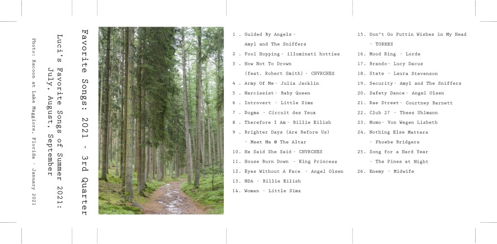 Since I got back from Germany in August, I feel like I’m constantly behind, trying to catch up and mostly out of breath. But never out of music. Here on the quick and dirty are the new songs I listened to mostly during that 3rd quarter of 2021. Next week, I’ll share my favorite songs of the last quarter of 2021… If I catch up…
