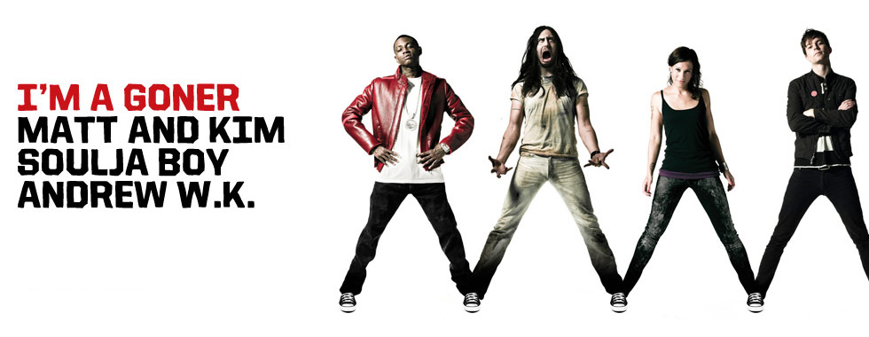 The Matt + Kim, Soulja Boy and Andrew W.K. collaboration “I’m A Goner” is the latest song from Converse Shoes. It was recorded in the new community-based Converse Rubber Tracks Studio in Brooklyn.