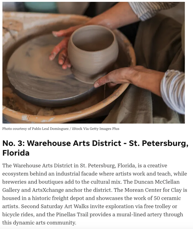 A reader poll in the USA Today news website chose the St. Petersburg Warehouse Arts District, where I have my studio and a few blocks from where I live, as the 3rd best Arts District in all of the USA. The arts neighborhoods that scored higher were the Dallas Arts District (Dallas, Texas) and the Bronzeville Art District (Chicago, Illinois).