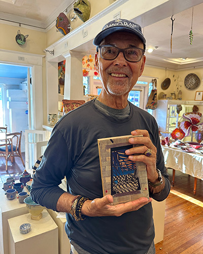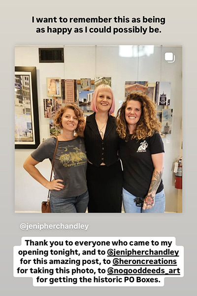 Because experiencing the changing city of St. Petersburg was part of the exhibit experience, I placed 7 “found art” pieces along the walk in-between the two galleries and thus coax people to go outside. The “found art” were pieces of concrete I had found on a construction site and then used the image transfer method to permanently add a different photo I’ve taken of Post-Historic St. Pete to each of the concrete pieces. People who found a piece and shared a photo with me (by text or by tagging me on the socials) were entered into raffle to win one of them during the closing event at Forever Florida.