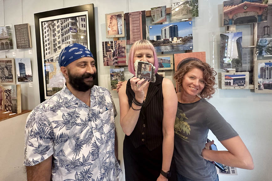 My photography-based art exhibit Post-Historic St. Pete (partially funded by the Gobioff Foundation) took place in two galleries simultaneously and along the walk in-between. Naturally, there were two opening receptions and lots of photos. Here are a few of them…