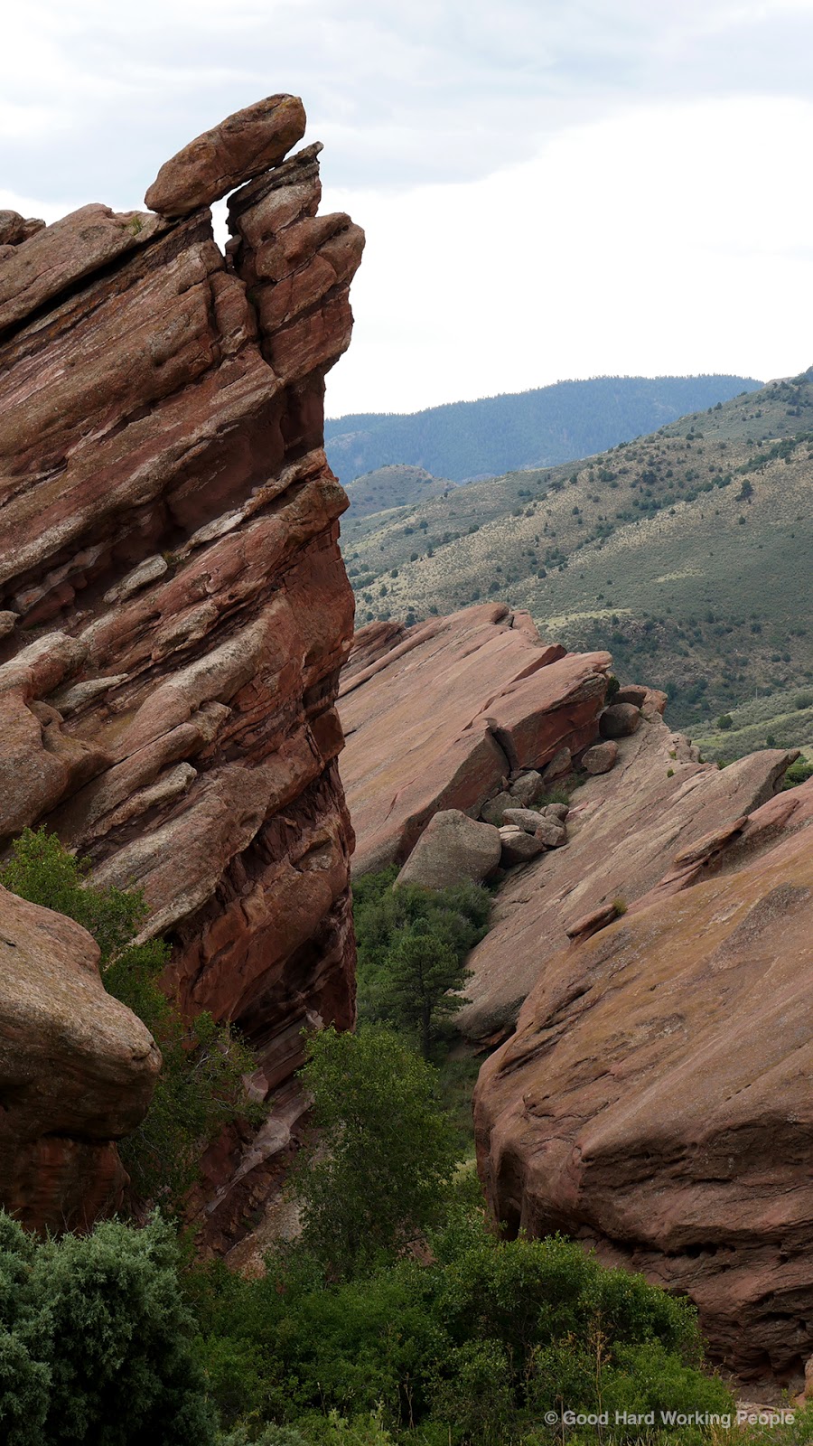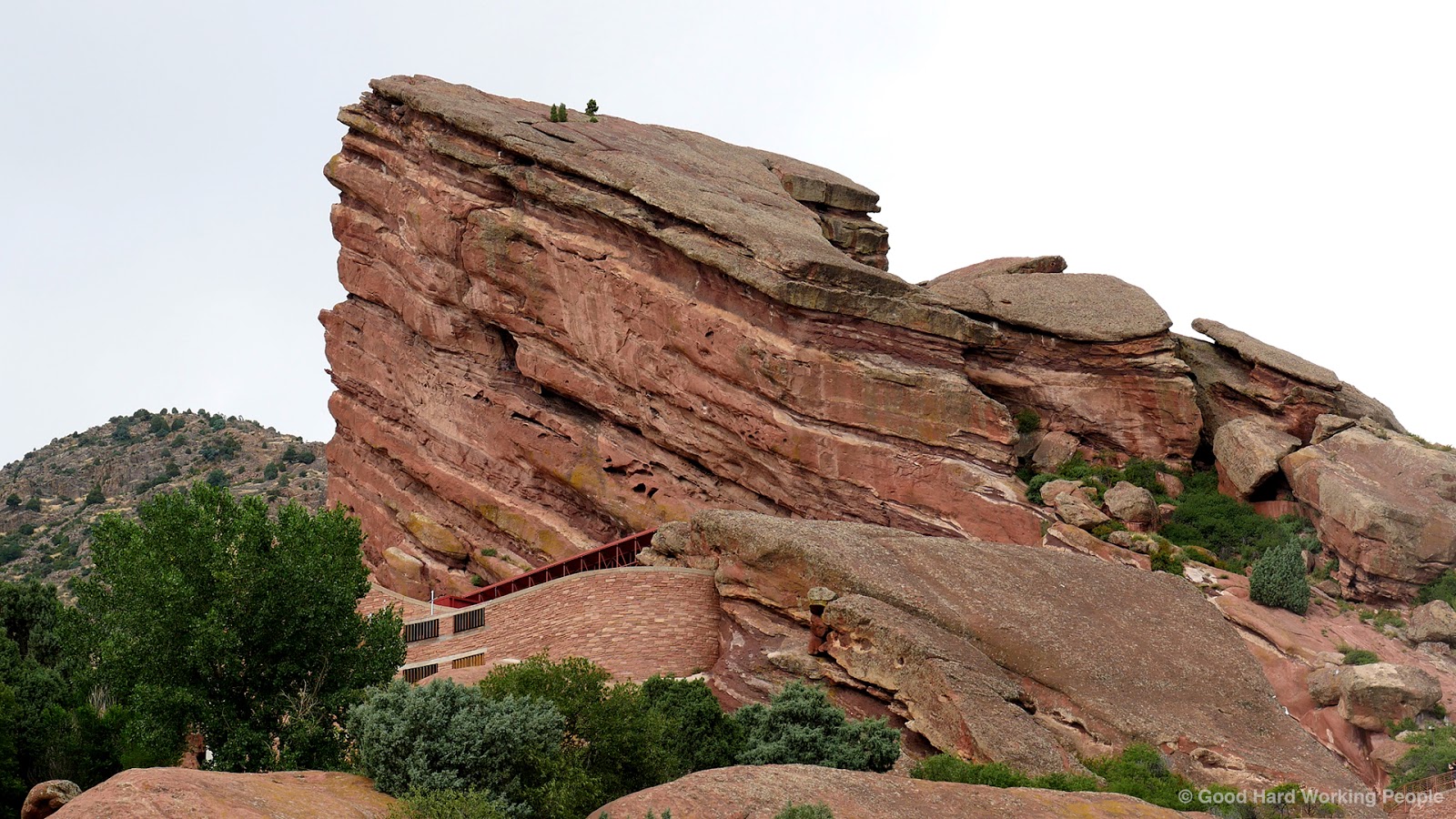 | There are trees growing on Creation Rock – and a stage out of Stage Rock.Red Rocks, Colorado. |