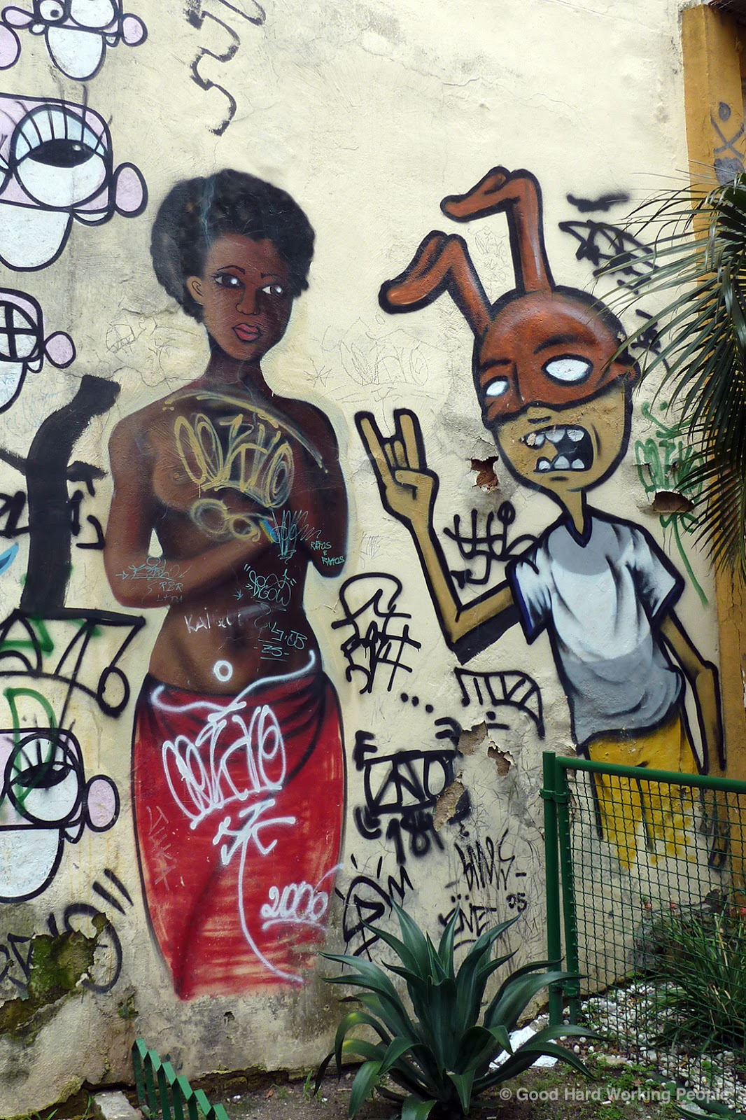 So fun when someone adds street art next to an already existing piece. It creates a story. Rio Street Art |